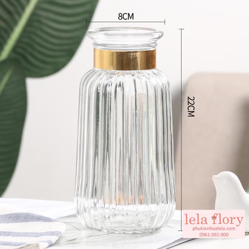 Giới thiệu Bình thủy tinh kẻ tăm cổ nhỏ gold - LOH0316