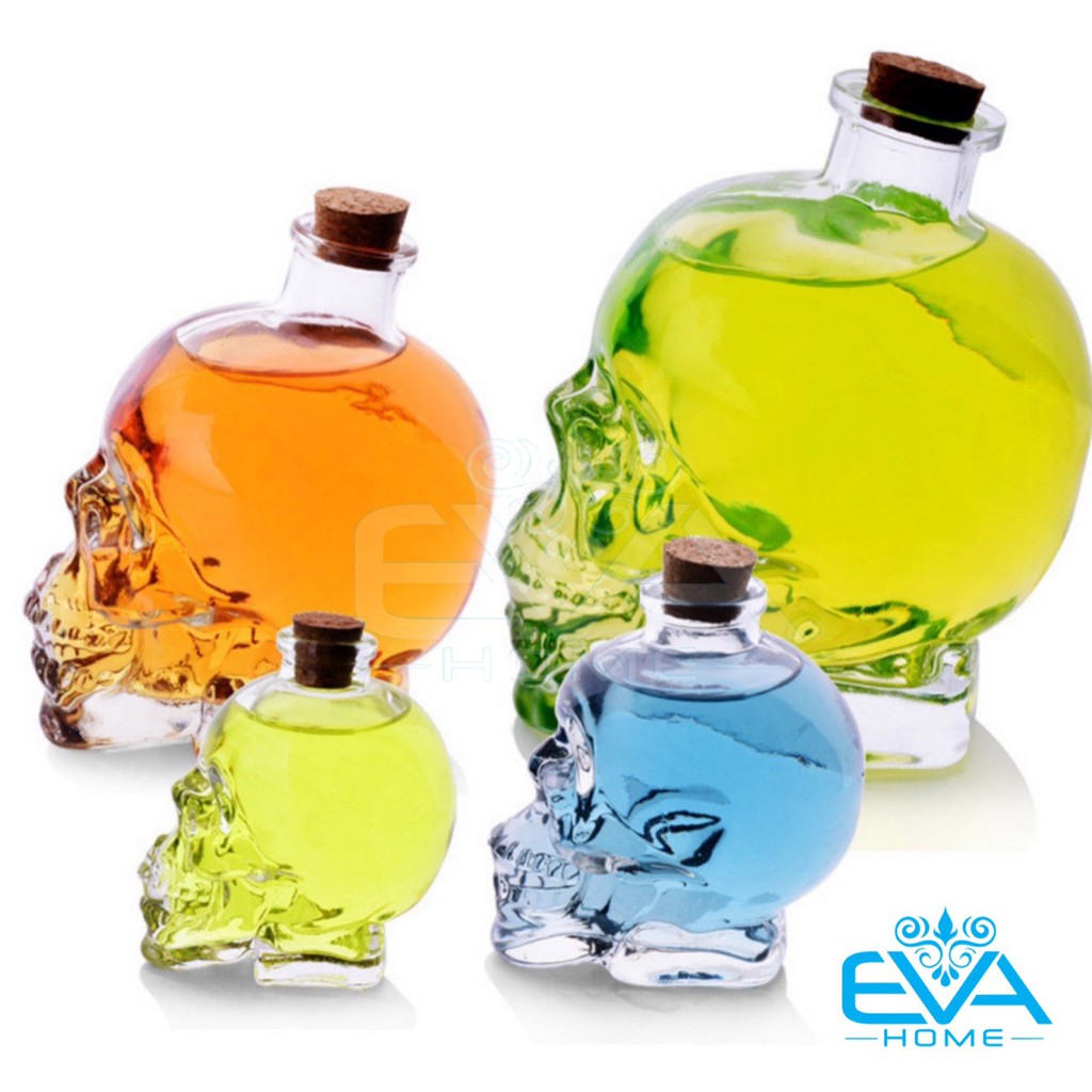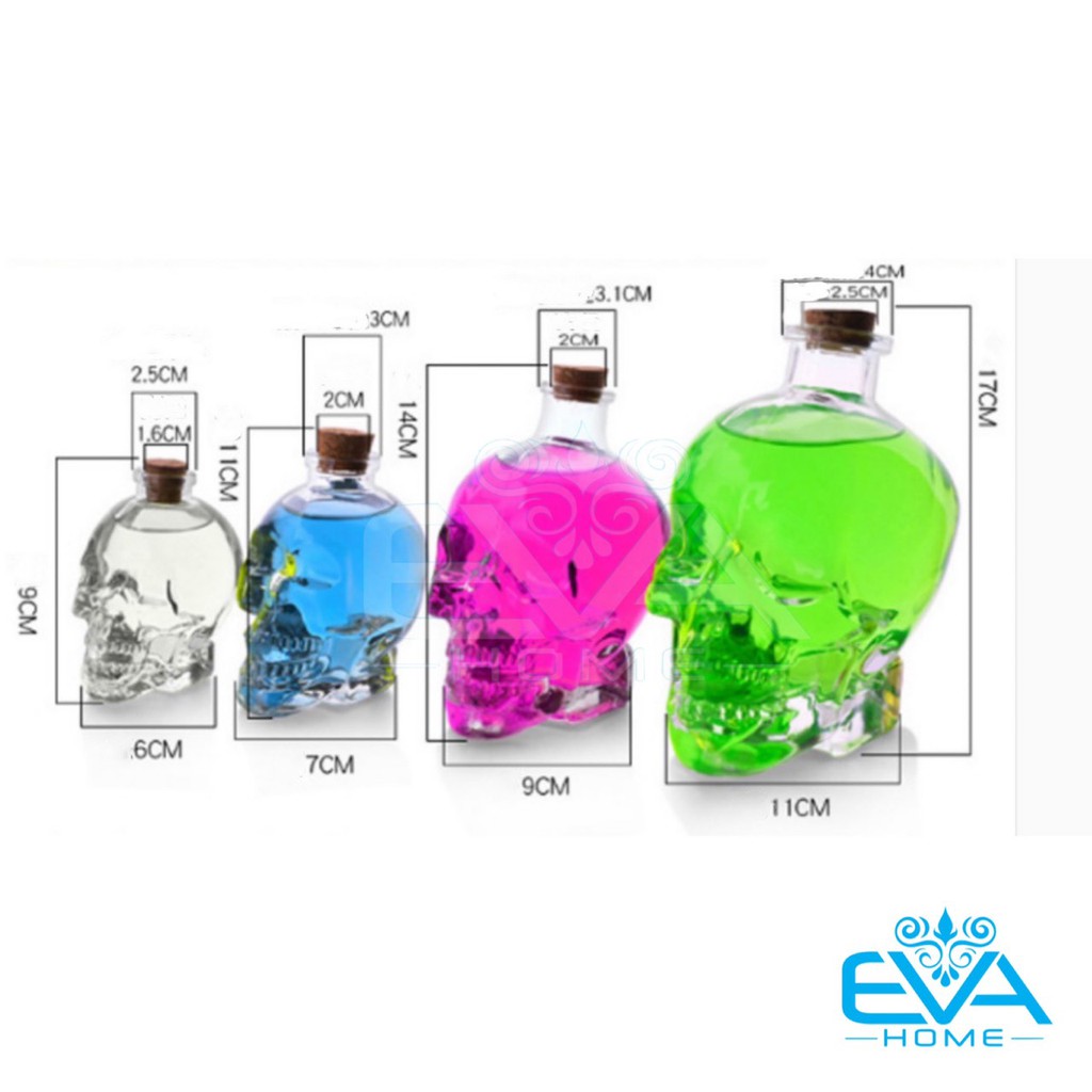 *** Sản phẩm Bình Thuỷ Tinh Kiểu dáng đầu lâu hiện nay Shop có tổng cộng 4 size để bạn có thể lựa chọn: