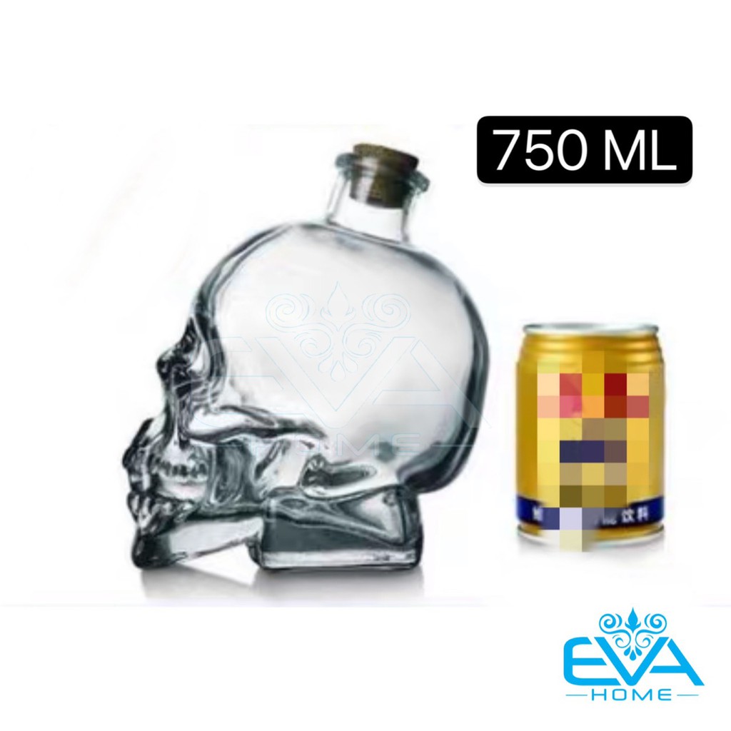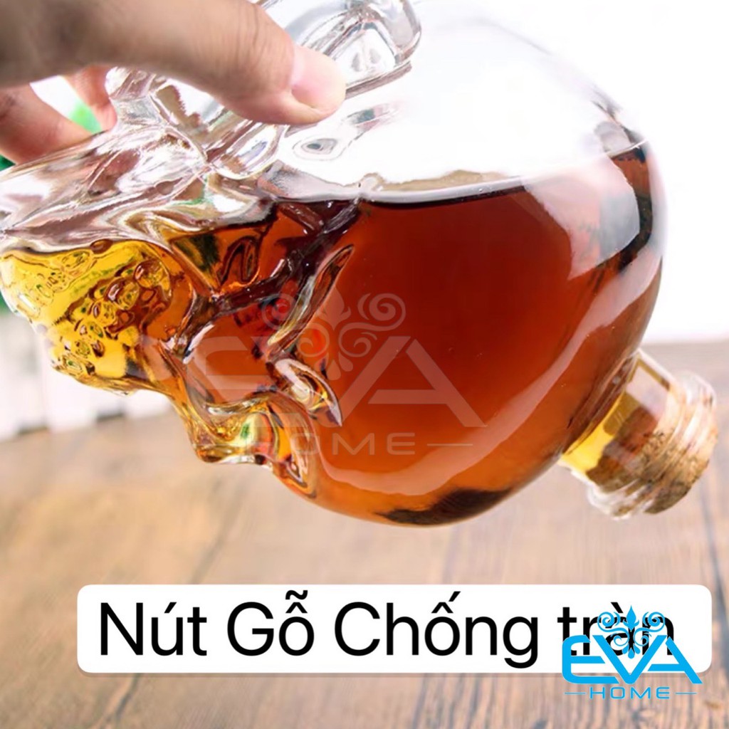 Bình Thuỷ Tinh Kiểu Dáng Đầu Lâu Nắp Nút Gỗ 750 Ml - Bình Đầu Lâu Nút Bần Đại M1322