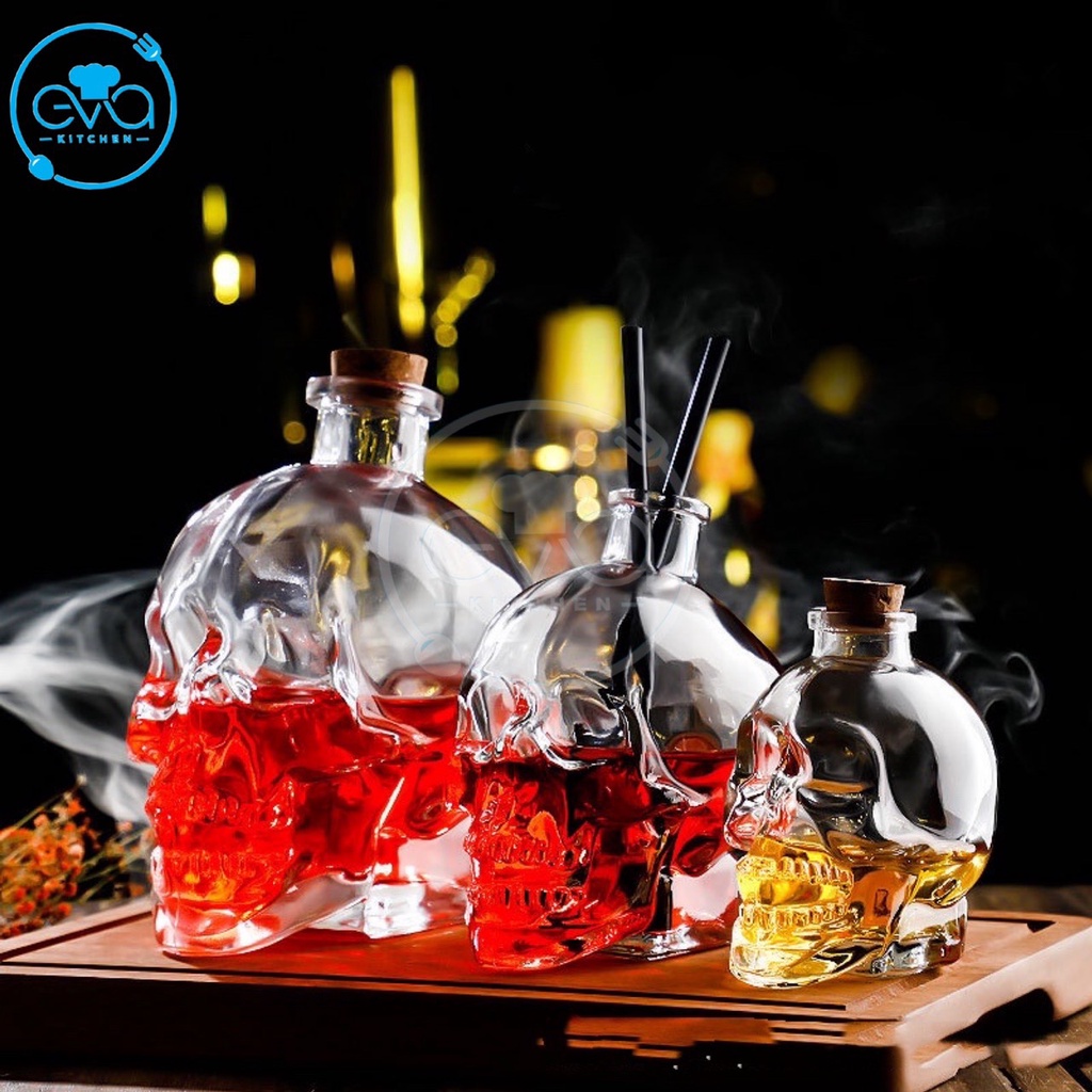 *** Sản phẩm Bình Thuỷ Tinh Kiểu dáng đầu lâu hiện nay Shop có tổng cộng 4 size để bạn có thể lựa chọn: