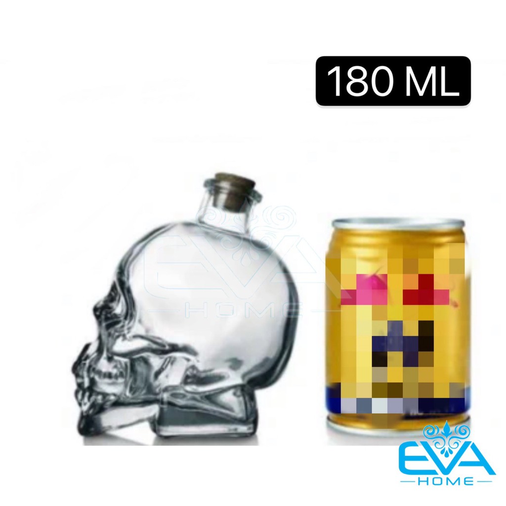 Bình Thuỷ Tinh Kiểu Dáng Đầu Lâu Nắp Nút Gỗ 180 Ml - Bình Đầu Lâu Nút Bần Nhỏ M1298