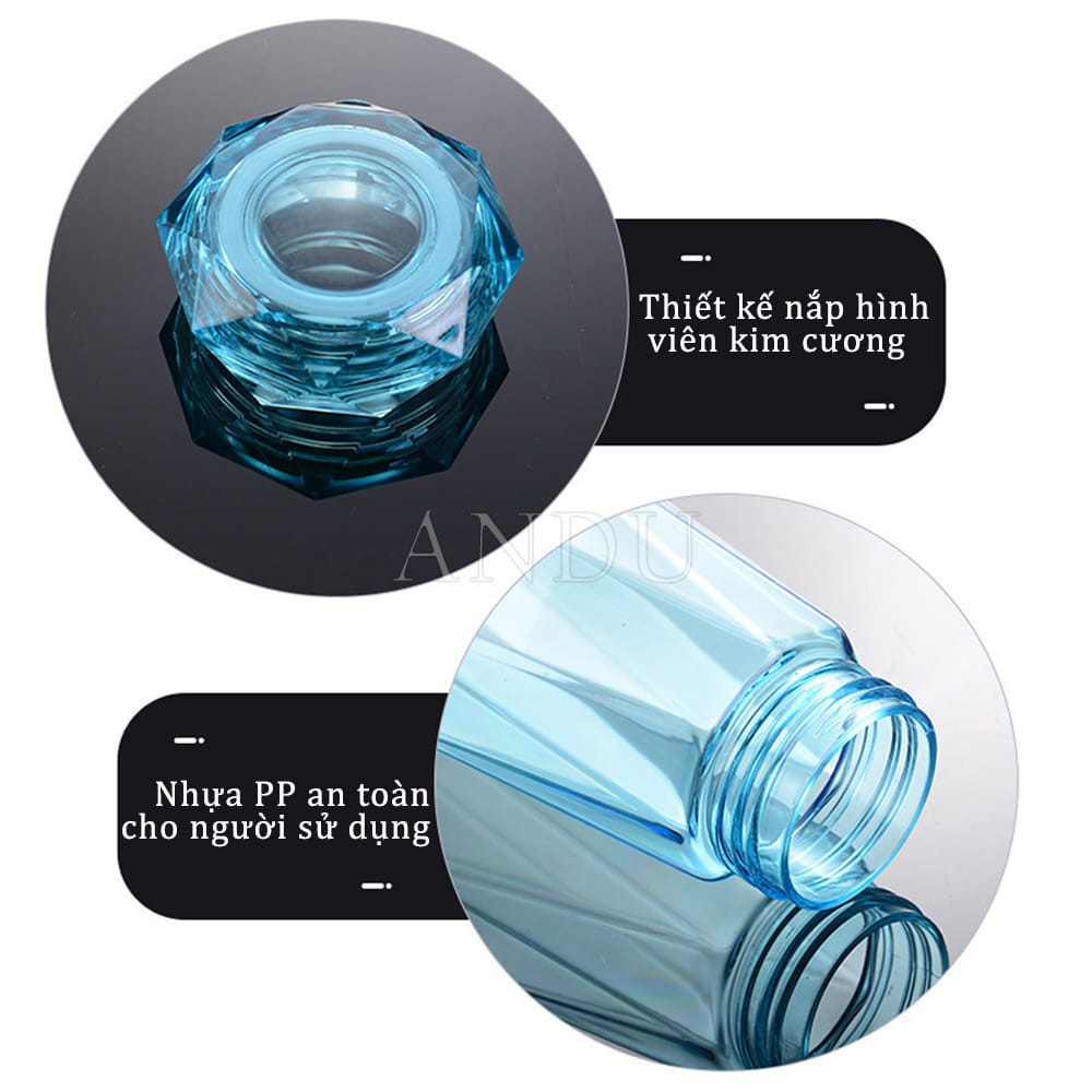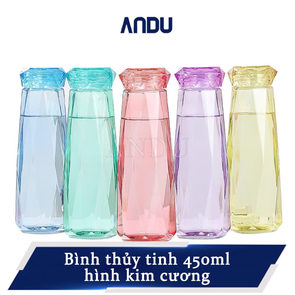 Bình thủy tinh kim cương, bình đựng nước nhiều màu 450ml cải tiến siêu nhẹ, siêu chịu nhiệt, cực bền