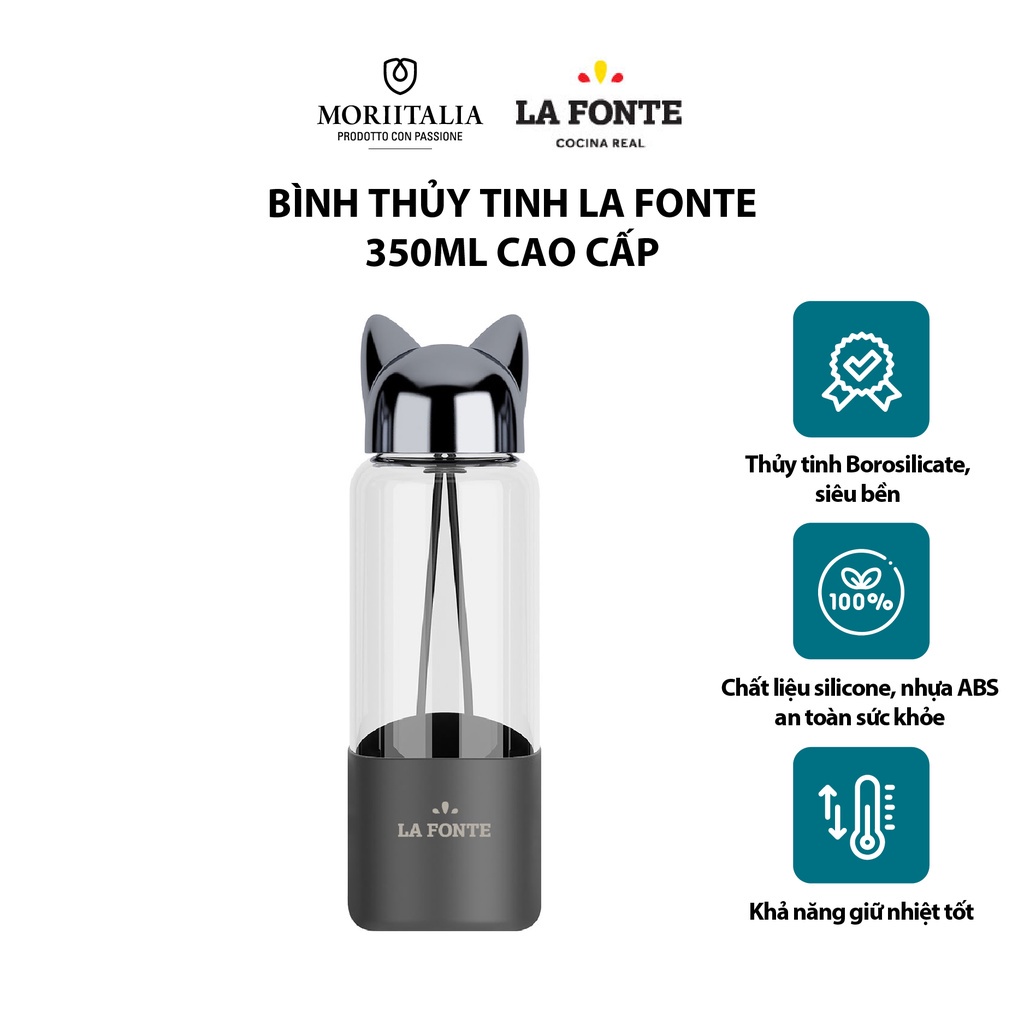 Giới thiệu [Mã BMBAU50 giảm 7% đơn 99K] Bình thủy tinh La Fonte 350ML cao cấp Moriitalia 007429-BLA