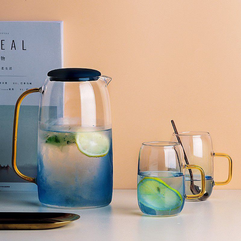 Bình và ly thủy tinh Đại Dương xanh với chất liệu thủy tinh Borocilicate cao cấp chịu nhiệt từ -25° tới 150°. Có thể chịu sốc nhiệt thay đổi nhiệt độ đột ngột từ nóng sang lạnh hoặc ngược lại.⚡Cùng với thiết kế sang trọng mang phong cách Châu Âu, bộ bình cốc Đại Dương xanh sẽ mang lại vẻ đẹp tinh tế cho căn phòng của bạn. Rất thích hợp làm quà biếu tặng bạn bè và người thân trong những dịp quan trọng như mừng tân gia, lễ Tết..