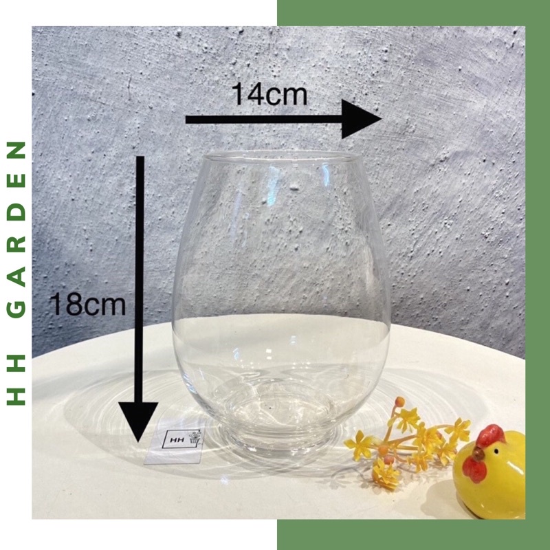 Giới thiệu Bình thuỷ tinh miệng khum cỡ 14*18cm, bình thuỷ tinh cắm hoa, trồng cây nuôi cá thuỷ sinh thuỷ canh