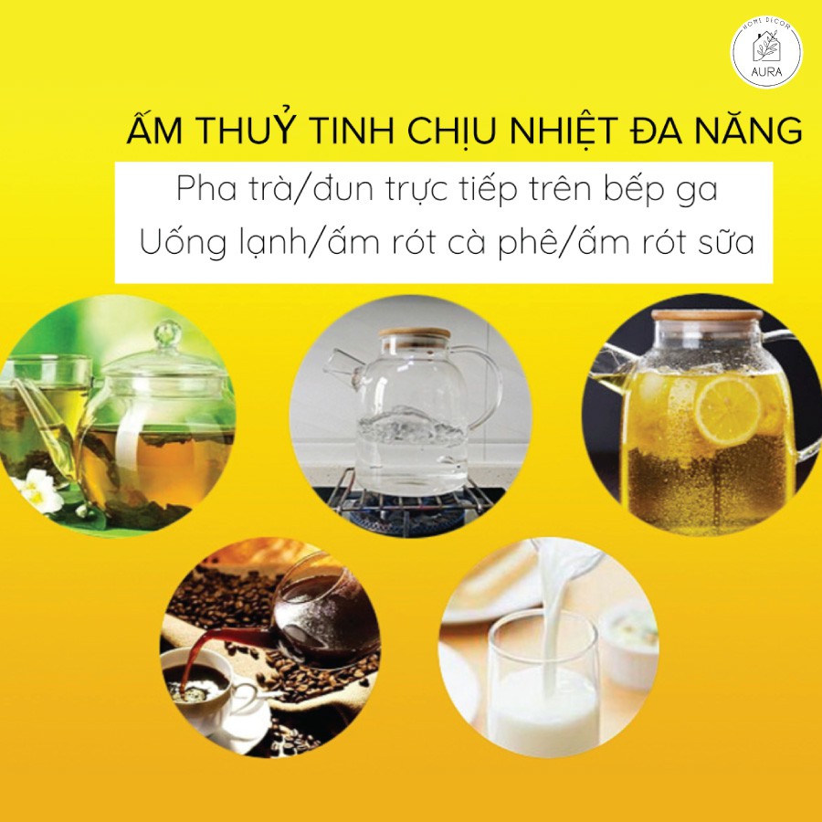 Mẫu bình / ấm thuỷ tinh chịu nhiệt borosilicate, bảo vệ môi trườngTất cả các mẫu đều là thuỷ tinh chịu nhiệt thủy tinh borosilicate có thể chịu được nhiệt độ từ -20 ℃ -150 ℃ (hệ số giãn nở 3,3), có thể đun trực tiếp trên bếp gas cũng như có thể để trong tủ lạnh.