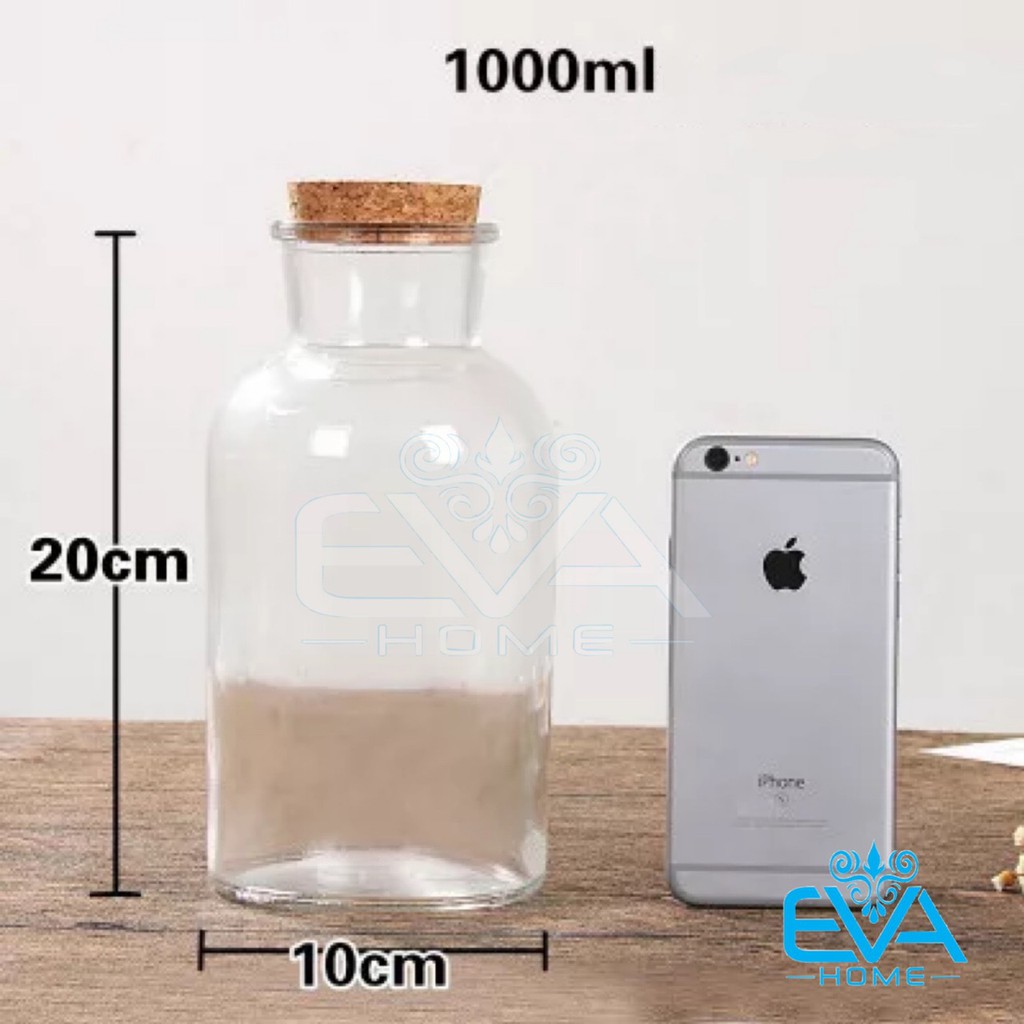 ***Mô tả sản phẩm : Lọ thuỷ tinh tròn nút gỗ 1000 ml / bình thuỷ tinh hình 1000 ml nút bần