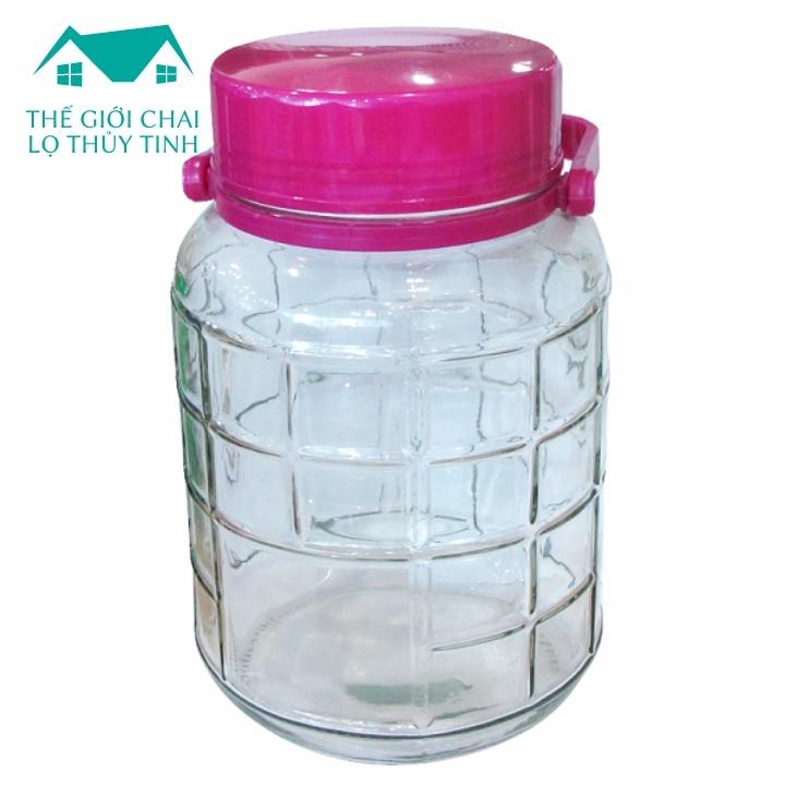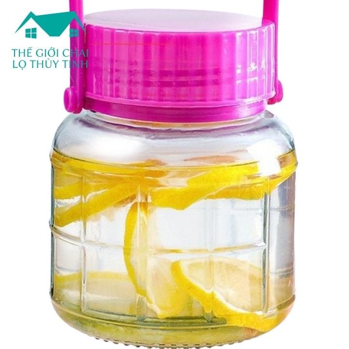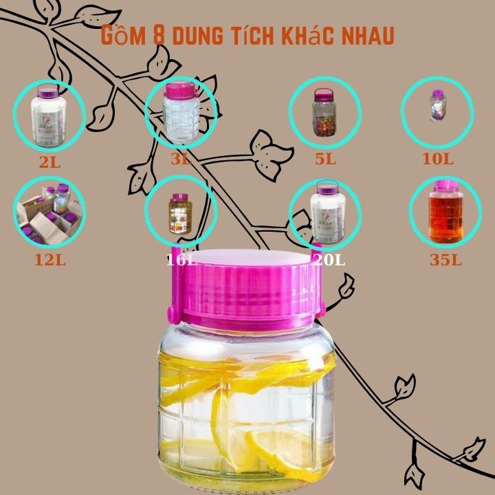Bình thủy tinh nắp tím 10L ngâm rượu quai xách chắc chắn bình dầy dặn có lắp nhựa đậy kín lỗ thử rượu [RẺ VÔ ĐỊCH]