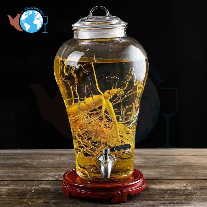 Nhà cửa & Đời sống > Bộ đồ bàn ăn > Bình nước & phụ kiện || Bình Thủy Tinh Ngâm Rượu Sâm họa tiết LẠC ĐÀ 10 LÍT có van hoặc không vanCòn hàng