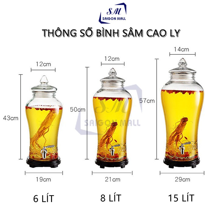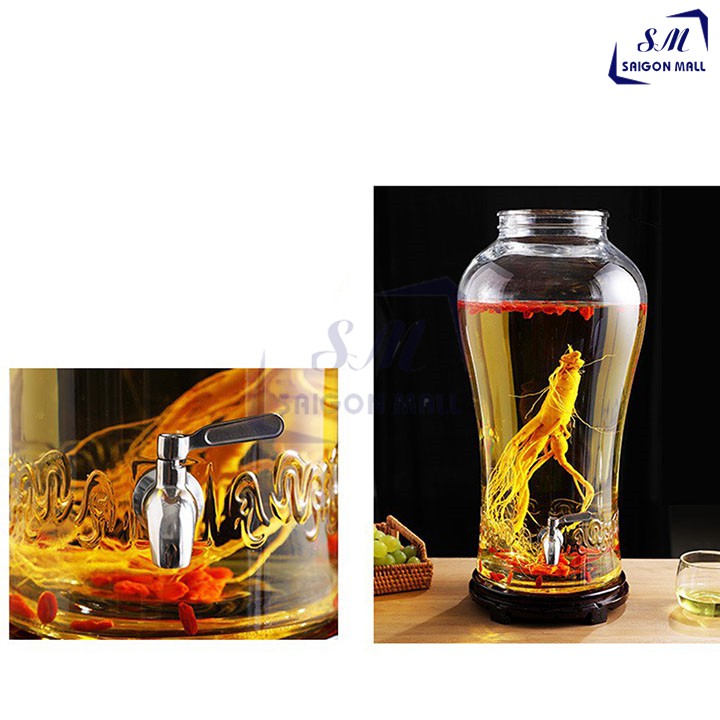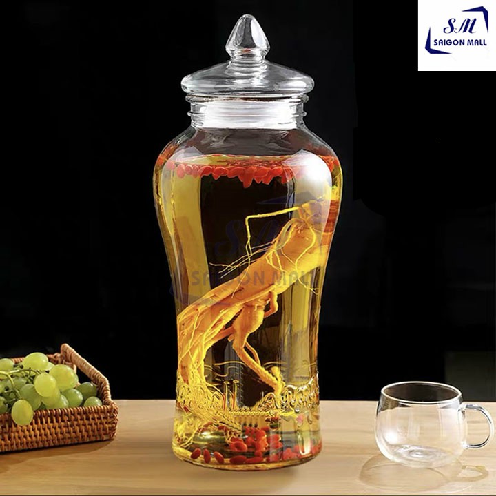 Bình Thủy Tinh Ngâm Rươu Sâm Cao Ly 6 lít có van hoặc không van