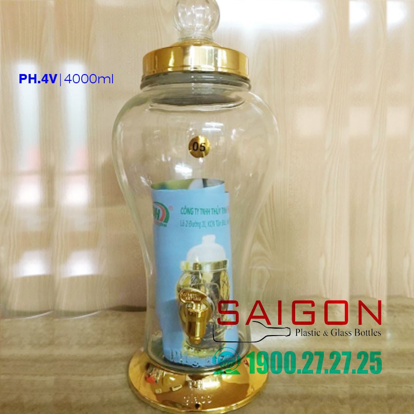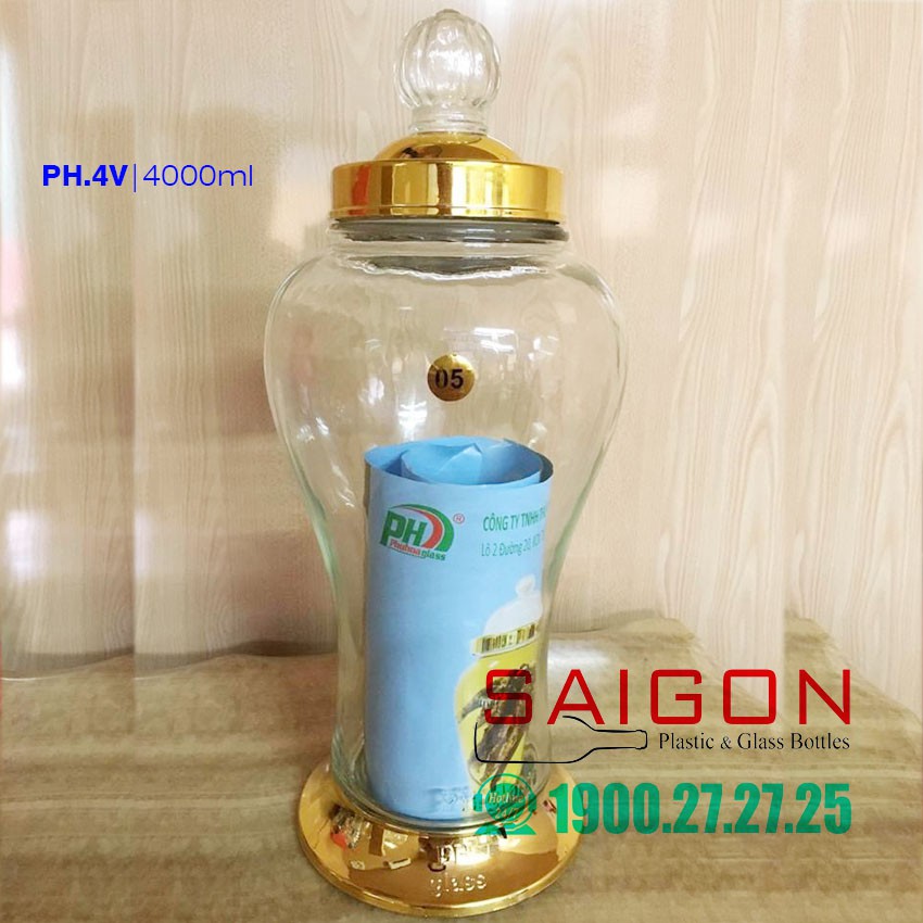 Bình Thủy Tinh Ngâm Sâm Phú Hòa 4 Lít | Thủy tinh Cao Cấp , Sản Xuất Việt Nam