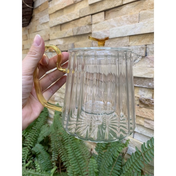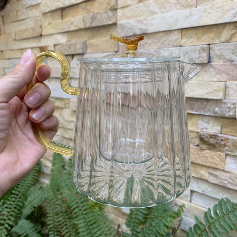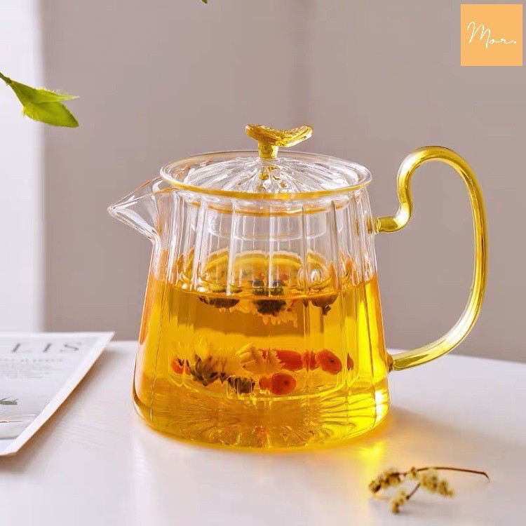 Nhà cửa & Đời sống > Dụng cụ nhà bếp > Dụng cụ pha trà, cà phê || Bình thủy tinh pha trà hoa chịu nhiệt kèm lõi lọc sọc quai vàngCòn hàng