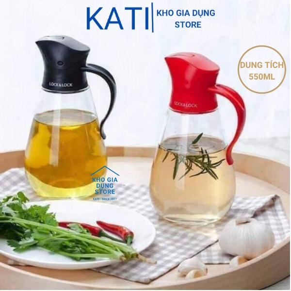 - Bình thủy tinh rót dầu Lock&Lock 550ml có thể dùng để đựng dầu ăn, giấm, nước mắm... tùy vào mục đích và nhu cầu của người sử dụng.