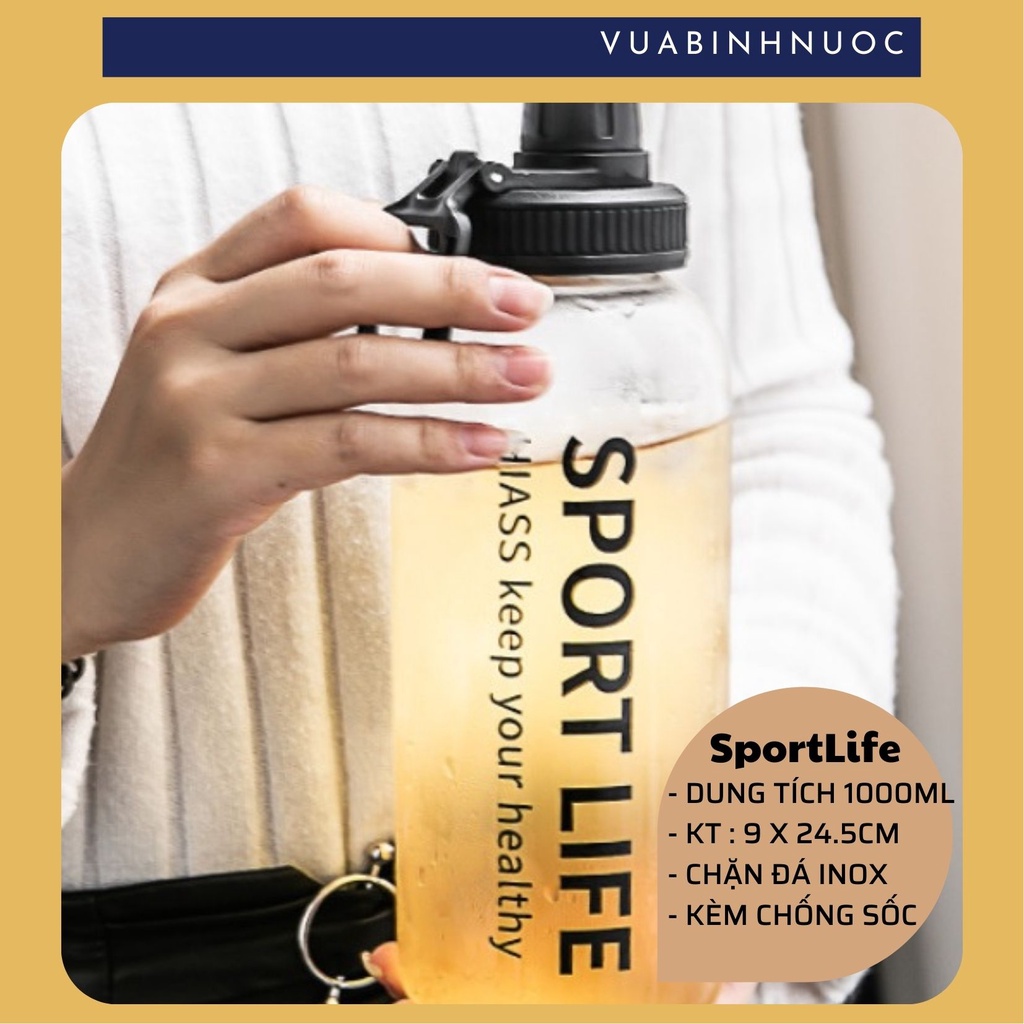 Bình thủy tinh SPORT LIFE 1000ml + túi chống sốc