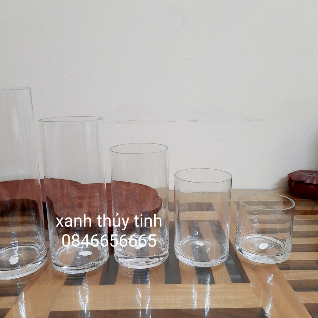 Bình thủy tinh trang trí, cắm hoa trụ tròn 15cm