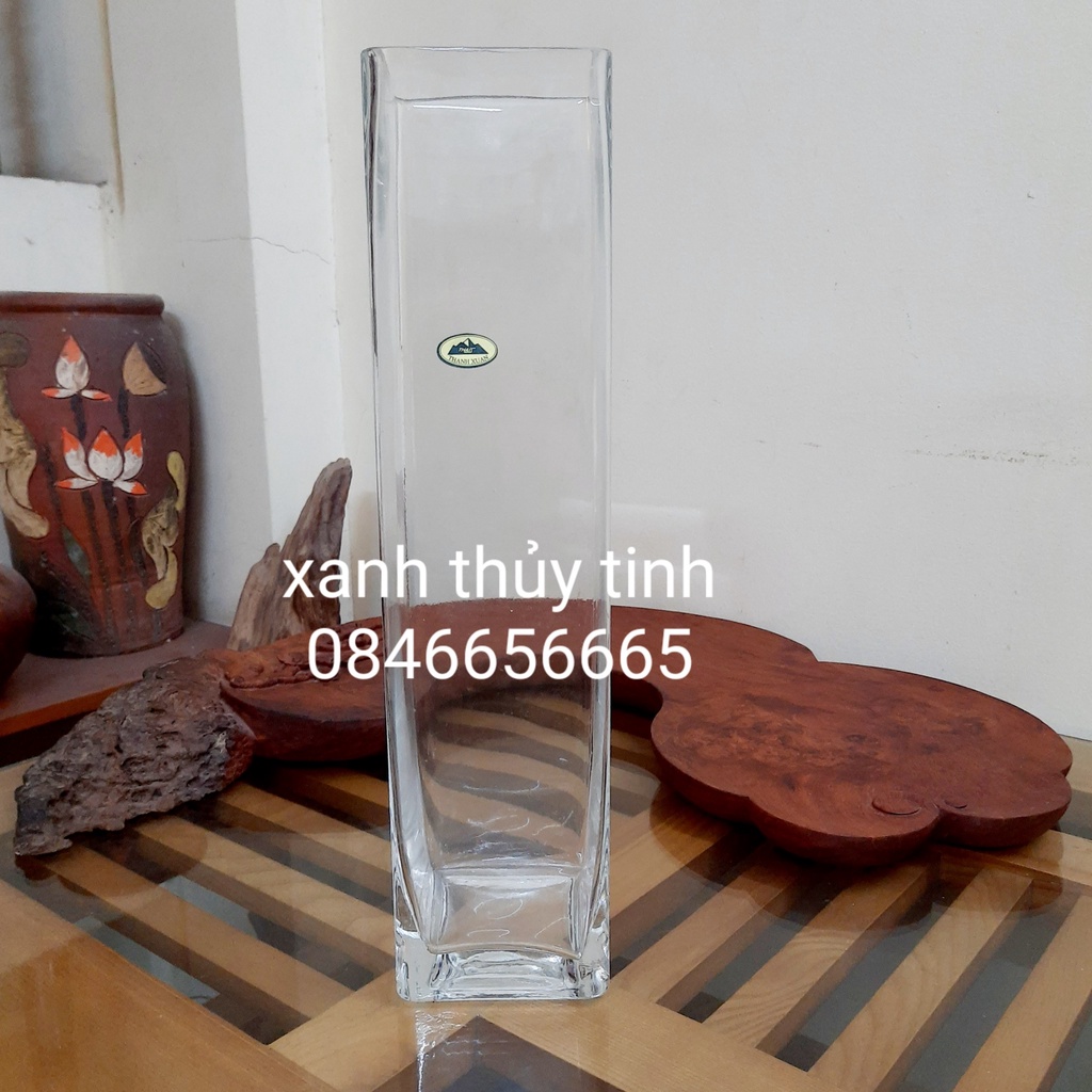 Bình thủy tinh trang trí, cắm hoa trụ vuông 40cm