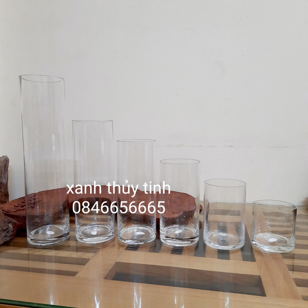 Bình thủy tinh trang trí, cắm hoa trụ tròn cao cấp 25cm