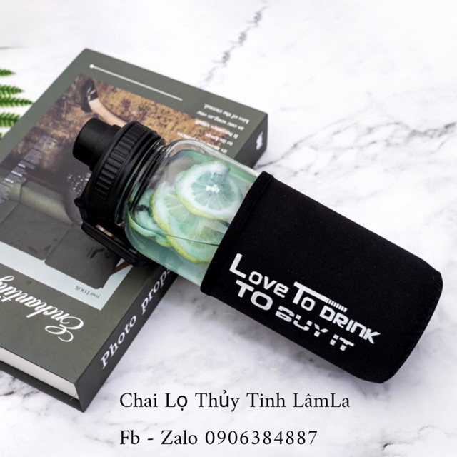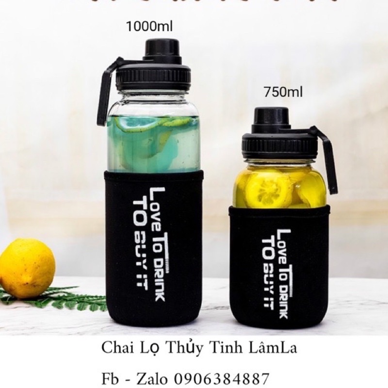 Bình Thuỷ Tinh Uống Nứơc Thể Thao Bọc Mút Love To Drink 750ml - 1000ml