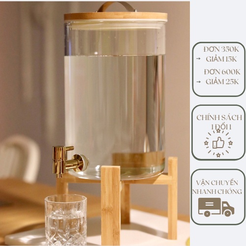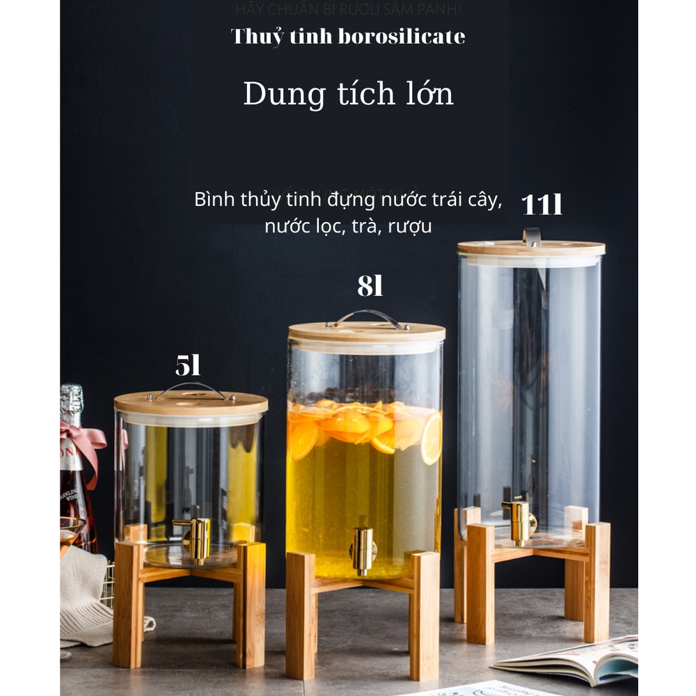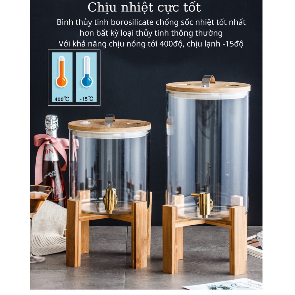 Bình thủy tinh[VIDEO SHOP TỰ QUAY] ♥️𝑪𝑨𝑶 𝑪𝑨̂́𝑷♥️ Bình thủy tinh BOROSILICATE kèm kệ gỗ có vòi vặn tiện lợi