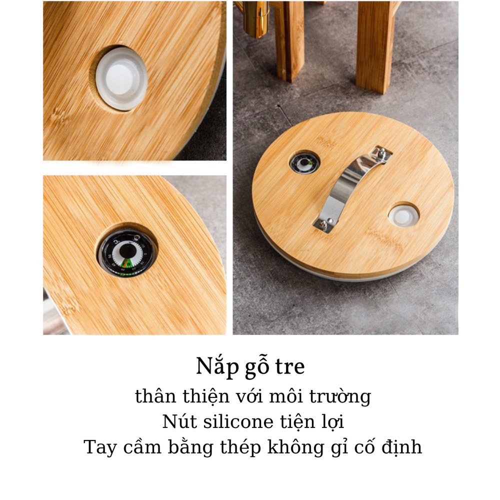 - Chất liệu: Thủy tinh cao cấp Borosilicate an toàn vệ sinh thực phẩm, màu trong suốt dễ dàng nhận biết loại đồ uống bên trong ,có thể đổ nước sôi trực tiếp vào và bình chịu nhiệt lên đến 300 *C kèm kệ gỗ tre tự nhiên