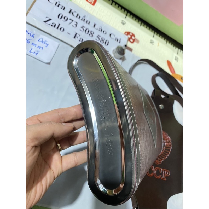 - Bình rượu Inox bọc da CCCP cao cấp + bao da màu nâu