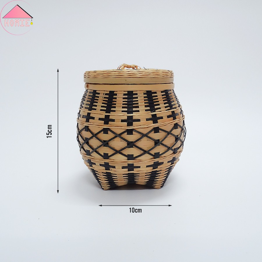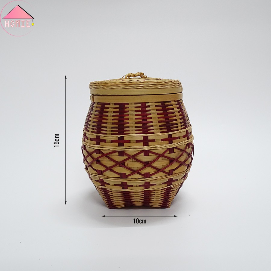 Bình tre đan có nắp dáng bầu sang trọng đựng đồ trang trí đa năngBình tre đan dáng bầu họa tiết sang trọng, bắt mắt sẽ là vật dụng trang trí hữu ích và độc đáo cho ngôi nhà của bạn. Thiết kế lòng bên trong rộng rãi và sâu khiến chiếc bình tre đan này có thể đựng được nhiều vật dụng khác nhau như bánh, kẹo, mứt, trà, cà phê… Khi cạnh bàn trà nước mời khách vừa toát lên vẻ sang trọng lại vừa cá tính không thể hòa lẫn với bất kì phong cách nào khác.