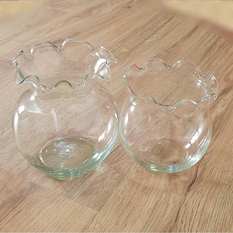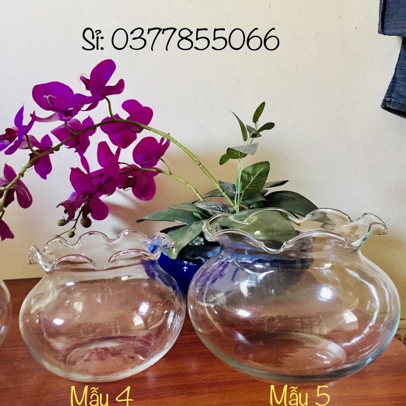 Nhà cửa & Đời sống > Làm vườn > Chậu cây || Bình tròn nuôi cá vàng để bàn ,bể cá thủy tinh mini, chậu trồng cây thủy sinh, họa tiết tai bèo, kích thước 10-15-25cmCòn hàng