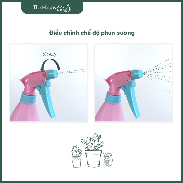 Bình tưới cây 400ml xịt phun sương tưới cây Hàn Quốc tưới tiểu cảnh, xương rồng, cây ban công -The Happy Birds