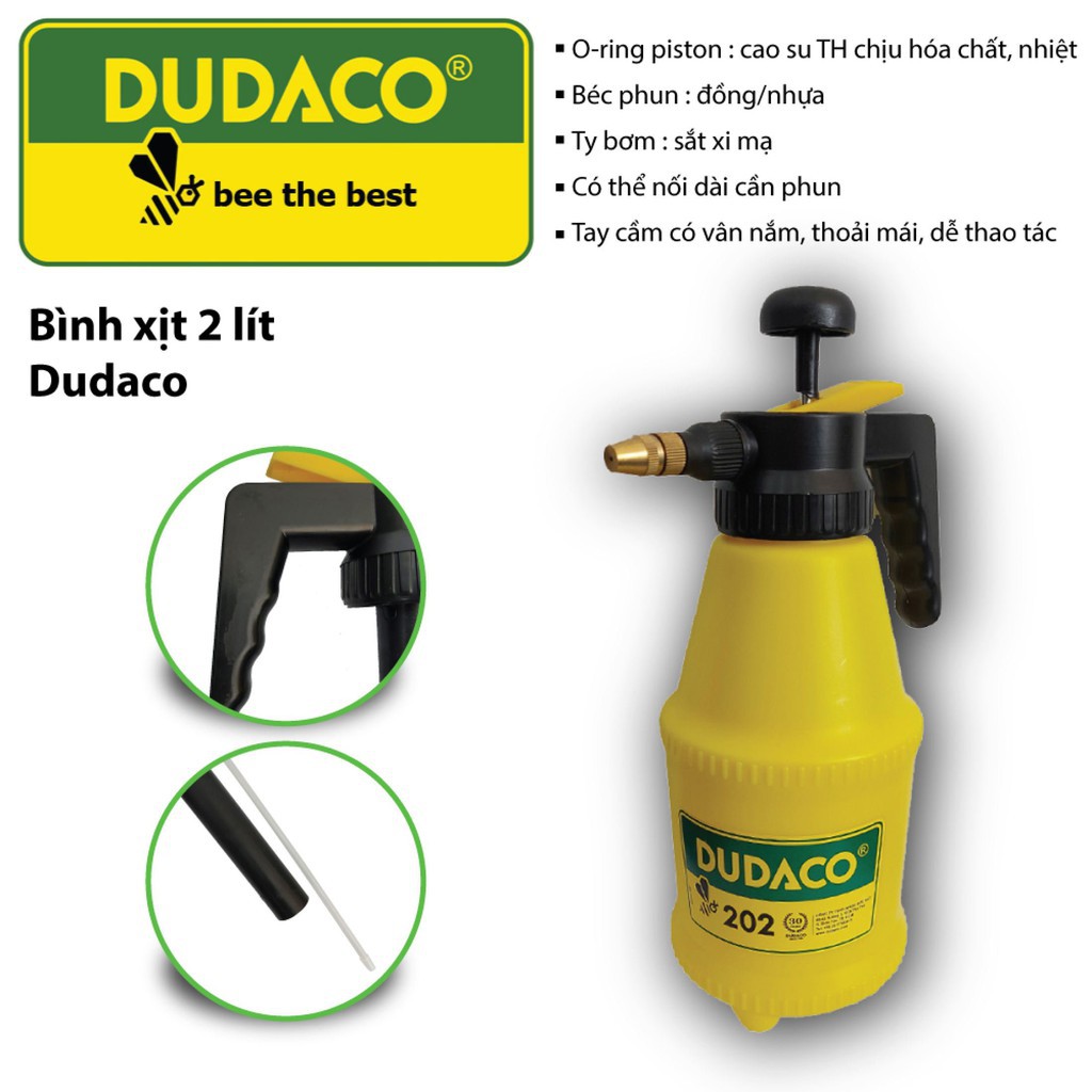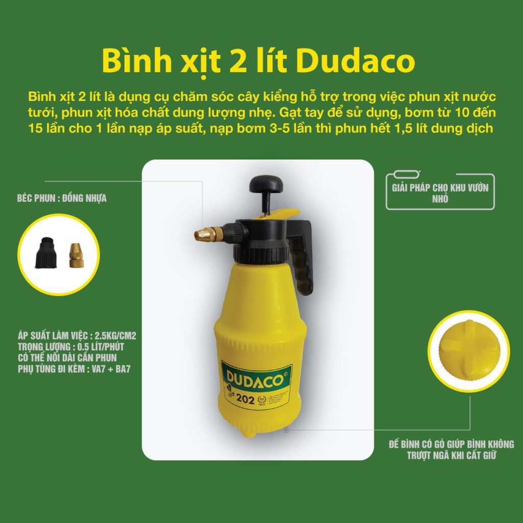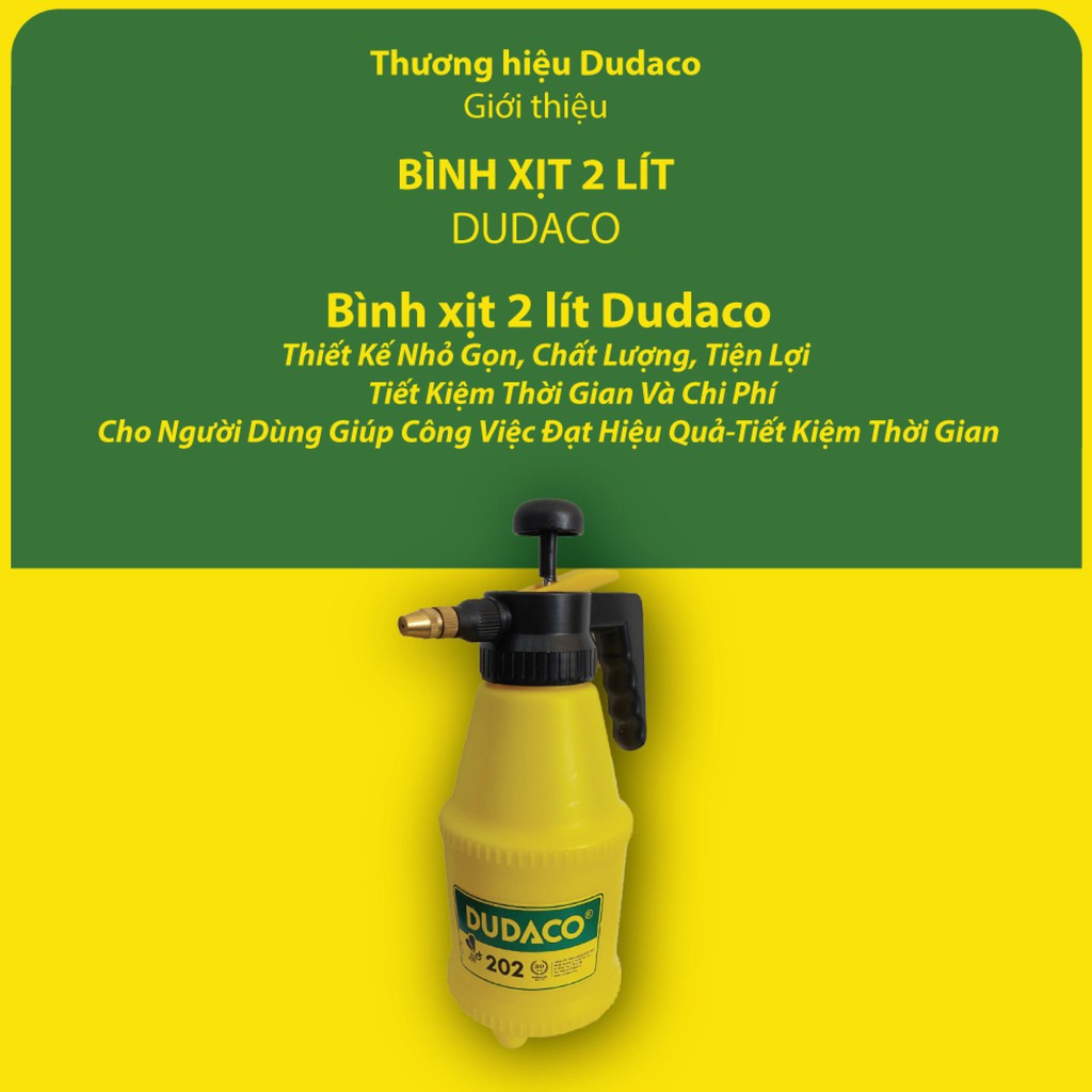 Bình DUDACO 2 lít loại không đế, béc đồng, dùng được với các loại hóa chất, nông dược thông thường.