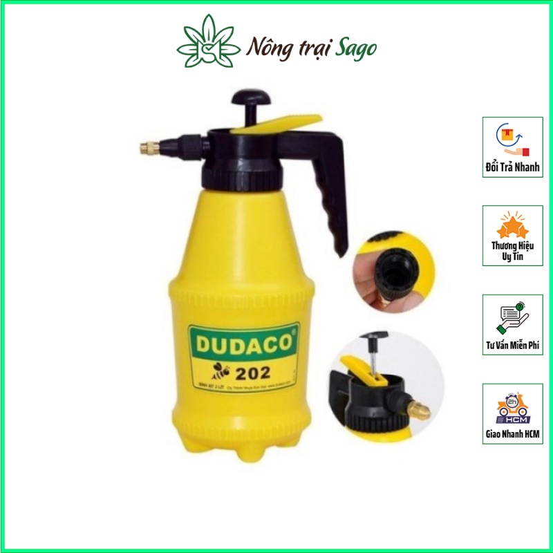 - Bình Xịt Phun Sương Tưới Nước Dudaco 202 có béc phun bằng nhựa cao cấp được sản xuất bằng công nghệ tự động, có thể điều chỉnh phun xòe, phún tia xa rất tiện lợi.