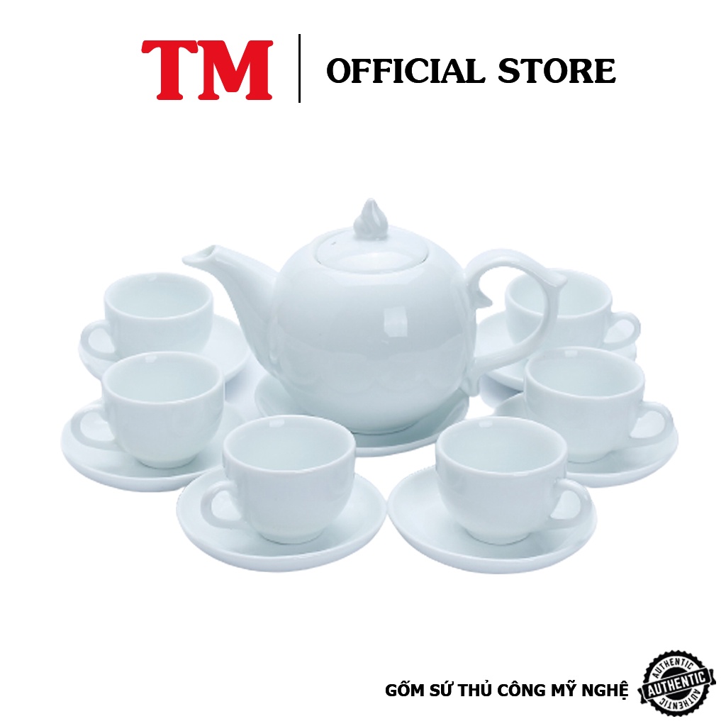 Bộ Bình Uống Trà Chóp Men Trắng Xưởng Gốm TM Bát Tràng (bộ bình uống trà, bình trà)