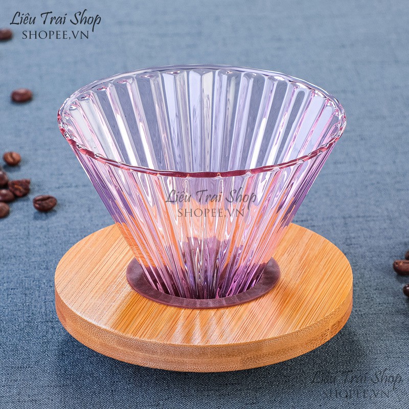 Nhà cửa & Đời sống > Dụng cụ nhà bếp > Dụng cụ pha trà, cà phê || Bộ bình và phễu drip v60 pha cà phê giấy lọc Pour over drip brew giá gỗ tròn nhiều màu gioăng siliconeCòn hàng