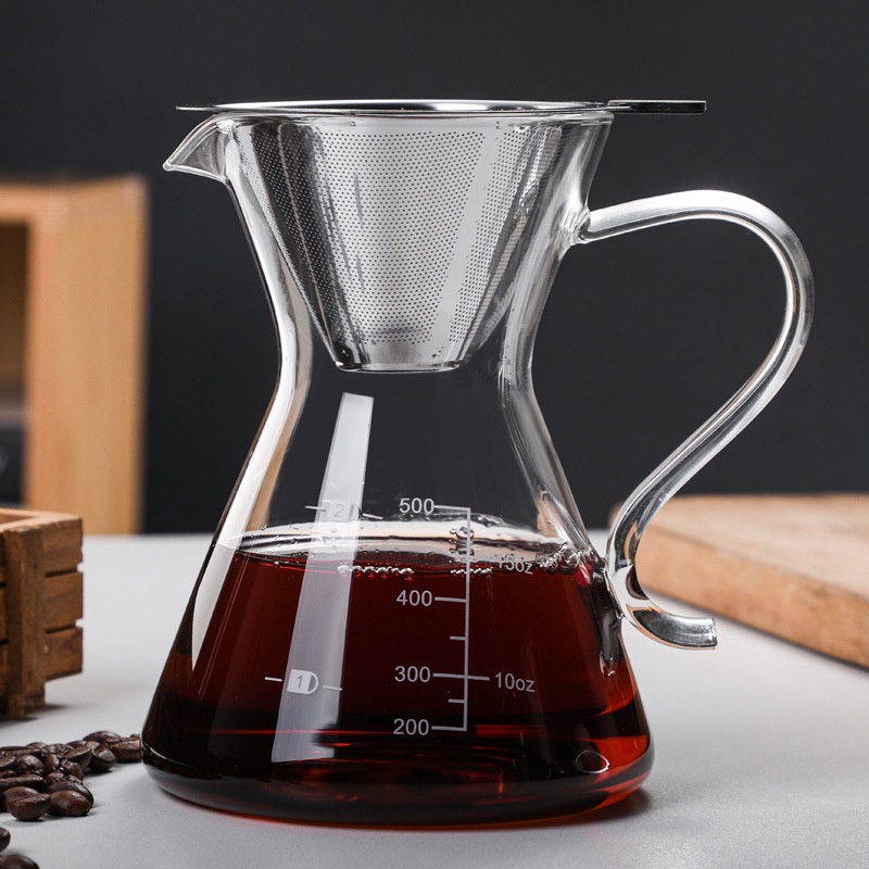 Bộ bình và phễu thủy tinh pha cà phê bằng giấy lọc, giá đỡ phễu bằng gỗ tre (có Ship HỎA TỐC trong ngày)