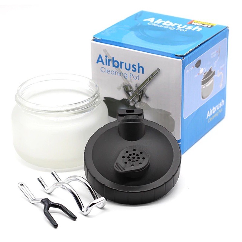 Bình chứa dễ vệ sinh Súng Phun Sơn Tiện Lợi Airbrush Cleaning PotBình rửa súng làm bằng thủy tinh chịu lực, miệng rộng, dễ lau chùi, Bình vệ sinh này có giá đỡ chắc chắn,thuận tiện hơn cho việc cầm giữ súng sơn