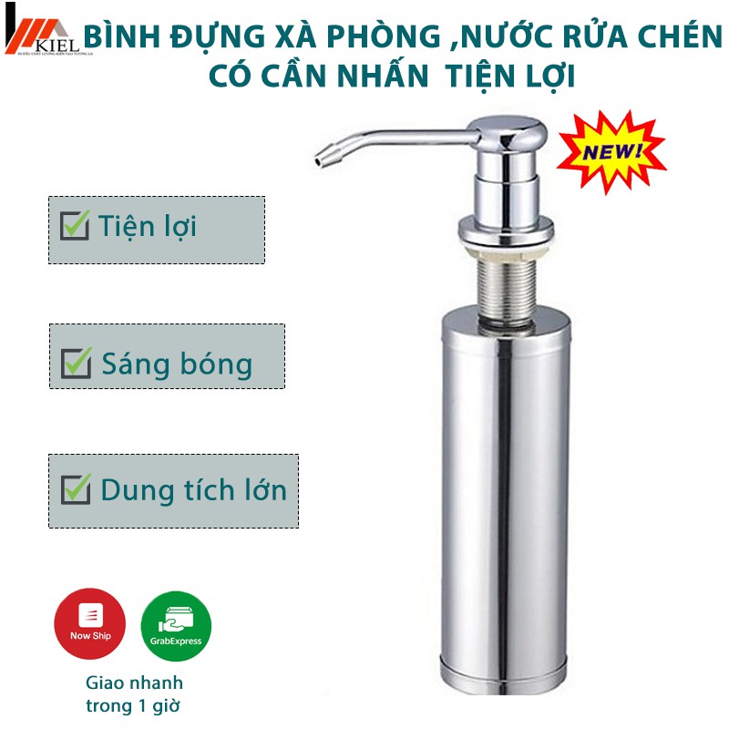 Bình xà bông 100% inox đựng nước rửa chén cao cấp với thiết kế tiện lợi.* Công dụng: đây là kiểu bình đựng nước rửa chén hiện đại, khách ưa chuộng, Bình lắp vừa tất cả các loại chậu, Bình nhấn hơi, âm thành chậu rửa chén, chỉ cái vòi nổi lên trên chậu, còn cái bình âm xuống thành chậu và cố định, khi ta thêm nước rửa chén, chỉ cần rút cái vòi ở trên, rồi đổ nước rửa chén vào, còn cái bình vẫn âm dưới thành chậu không phải tháo ra, bình có 1 thiết kế giống cái van để giữ dưới thành chậu mà không bao giờ bị rơi