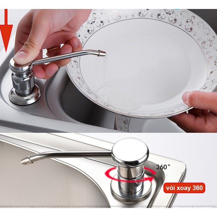 Bình xà bông gắn trên bồn rửa chén - Bình xà bông âm chậu - Xà bông nhấn chậu 100% inox