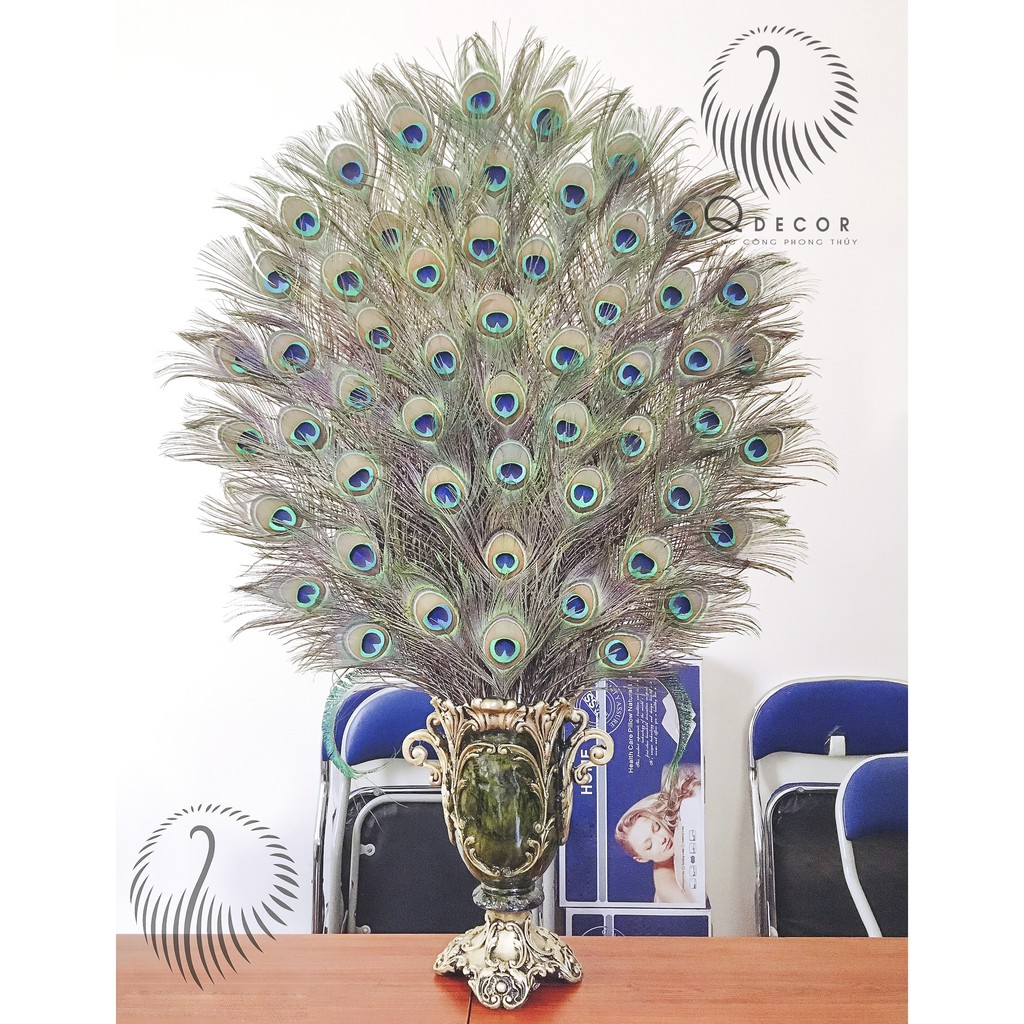 Bình xanh lá và 55 cành lông công phong thủy loại 1Bình cắm số lượng 55 cành mang ý nghĩa là ĐẠI- PHÚC