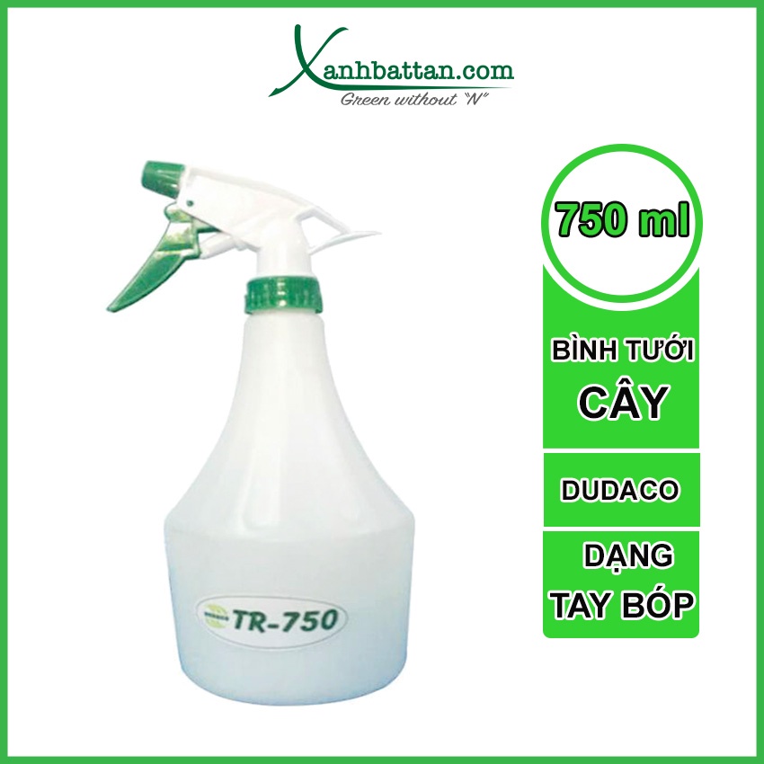 BÌNH XỊT BÓP TAY DUDACO 750TRBình xịt bóp tay 750TR là dòng sản phẩm bình tưới cây thuộc thương hiệu Dudaco, được sản xuất với chất liệu nhựa tổng hợp siêu bền, khóa an toàn với thiết kế nhỏ gọn rất thích hợp để tưới cây kiểng trong nhà, cây để bàn, sen đá và các loại cây kiểng mini khác.