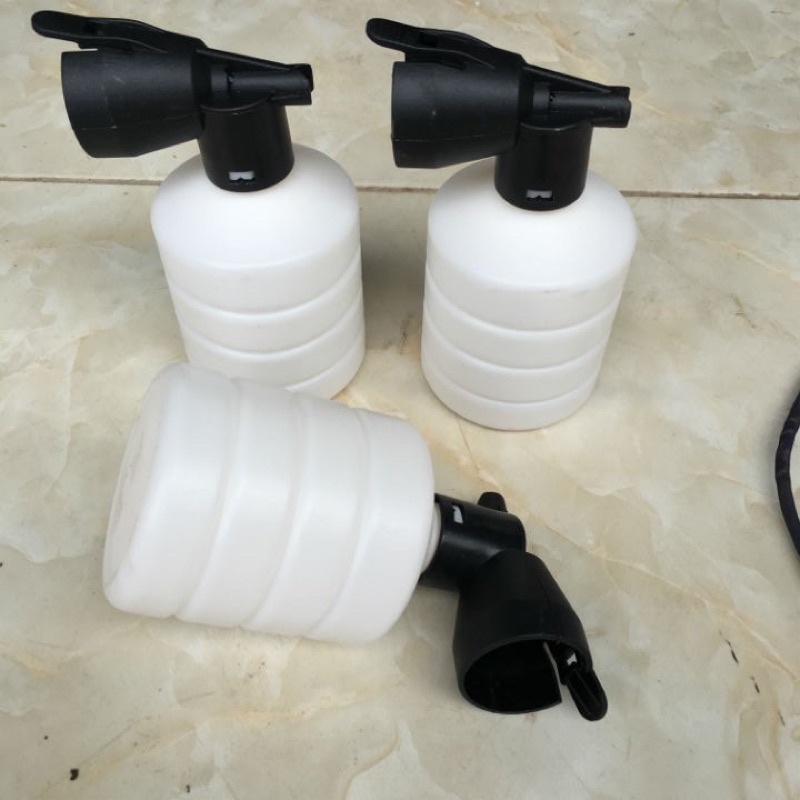 GIỚI THIỆU VỀ BÌNH XỊT BỌT TUYẾTViệc rửa xe, tẩy rửa sàn nhà, cửa kính, bể bơi…thường mất nhiều thời gian cho bạn nếu phải sử dụng phương pháp truyền thống kéo các cuộn ống dài và các vật dụng lỉnh kỉnh khác. Chính vì thế, mọi gia đình hiện nay ai cũng sở hữu cho mình chiếc máy phun xịt rửa cao áp. Tuy nhiên, bạn cần trang bị thêm thiết bị trợ giúp khác đó chính là Bình xà bông tạo bọt tuyết máy xịt cao áp - 0.3L mang đến vẻ sạch đẹp, sáng bóng, diệt vi khuẩn cho các đồ dùng, nhà cửa, thiết bị của bạn. Đặc biệt nếu bình xà bông trong nhà bạn bị hư hoặc đánh mất thì với mức phí khá hấp dẫn này bạn có thể dễ dàng thay thế cho chiếc máy phun của mình được hiệu quả hơn.