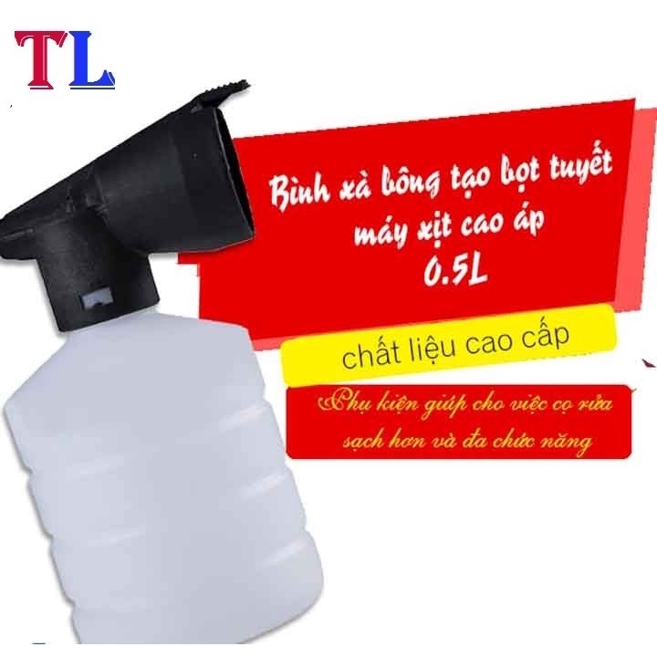 Việc rửa xe, tẩy rửa sàn nhà, cửa kính, bể bơi…thường mất nhiều thời gian cho bạn nếu phải sử dụng phương pháp truyền thống kéo các cuộn ống dài và các vật dụng lỉnh kỉnh khác. Chính vì thế, mọi gia đình hiện nay ai cũng sở hữu cho mình chiếc máy phun xịt rửa cao áp. Tuy nhiên, bạn cần trang bị thêm thiết bị trợ giúp khác đó chính là Bình xà bông tạo bọt tuyết máy xịt cao áp - 0.5L mang đến vẻ sạch đẹp, sáng bóng, diệt vi khuẩn cho các đồ dùng, nhà cửa, thiết bị của bạn. Đặc biệt nếu bình xà bông trong nhà bạn bị hư hoặc đánh mất thì với mức phí khá hấp dẫn này bạn có thể dễ dàng thay thế cho chiếc máy phun của mình được hiệu quả hơn.