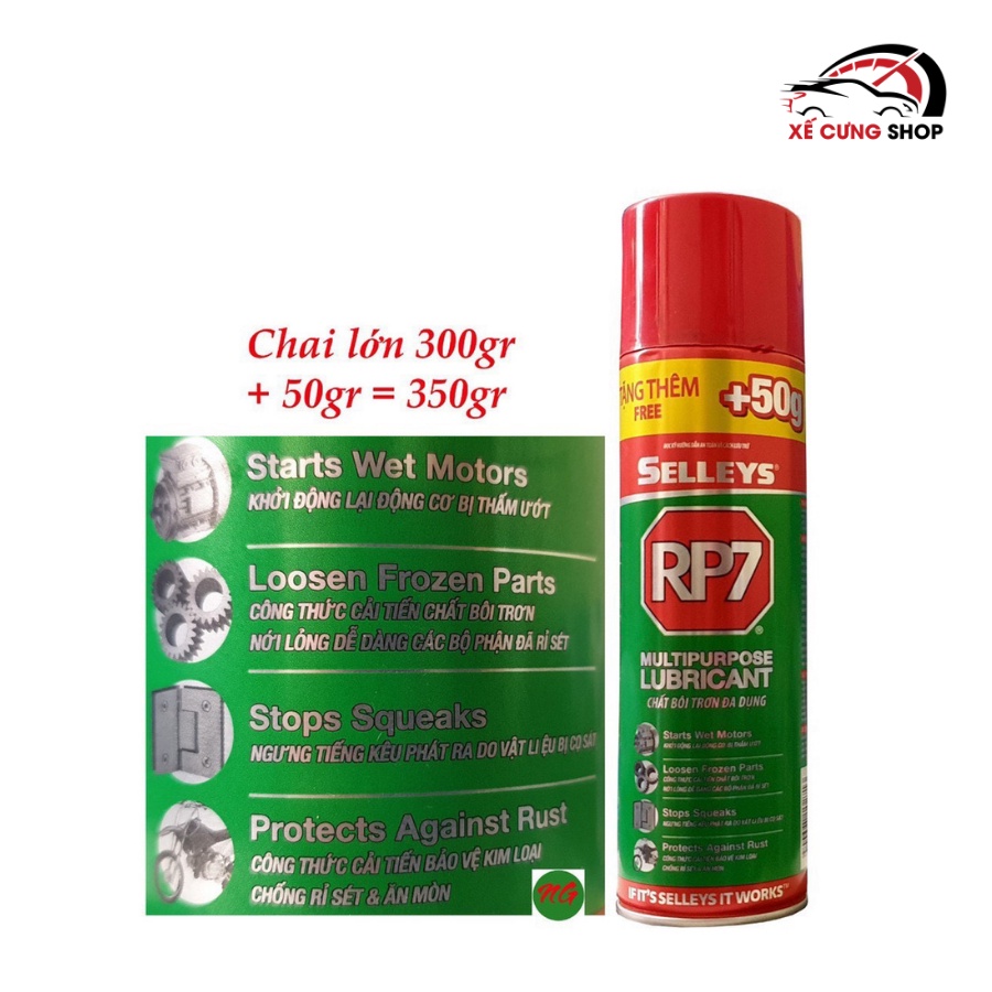 Bình xịt chống gỉ sét và bôi trơn Selleys RP7 350g là sản phẩm chính hãng của thương hiệu Selleys Australia, nơi chuyên sản xuất các loại chai xịt chống rỉ sét. Sản phẩm dầu chống rỉ sét và bôi trơn Selleys RP7 nay được cải tiến với đóng gói mới, tăng thêm 50g so với mẫu cũ.Sản phẩm được sản xuất tại Thái Lan, phân phối chính hãng bởi Fact-Depot.