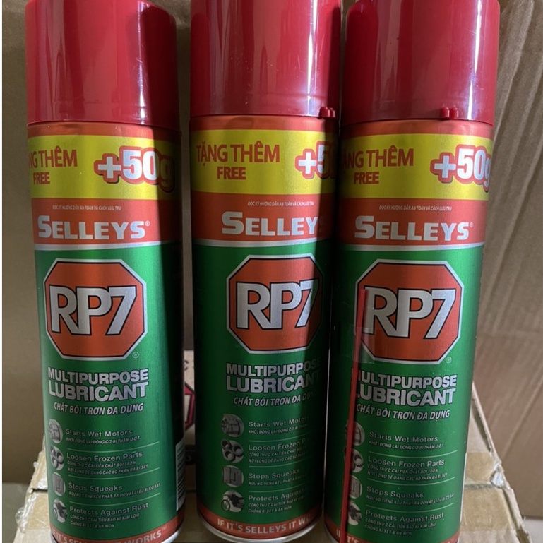Bình xịt chống gỉ sét và bôi trơn Selleys RP7 350gBình xịt chống gỉ sét và bôi trơn Selleys RP7 350g là sản phẩm chính hãng của thương hiệu Selleys Australia, nơi chuyên sản xuất các loại chai xịt chống rỉ sét. Sản phẩm dầu chống rỉ sét và bôi trơn Selleys RP7 nay được cải tiến với đóng gói mới, tăng thêm 50g so với mẫu cũ.