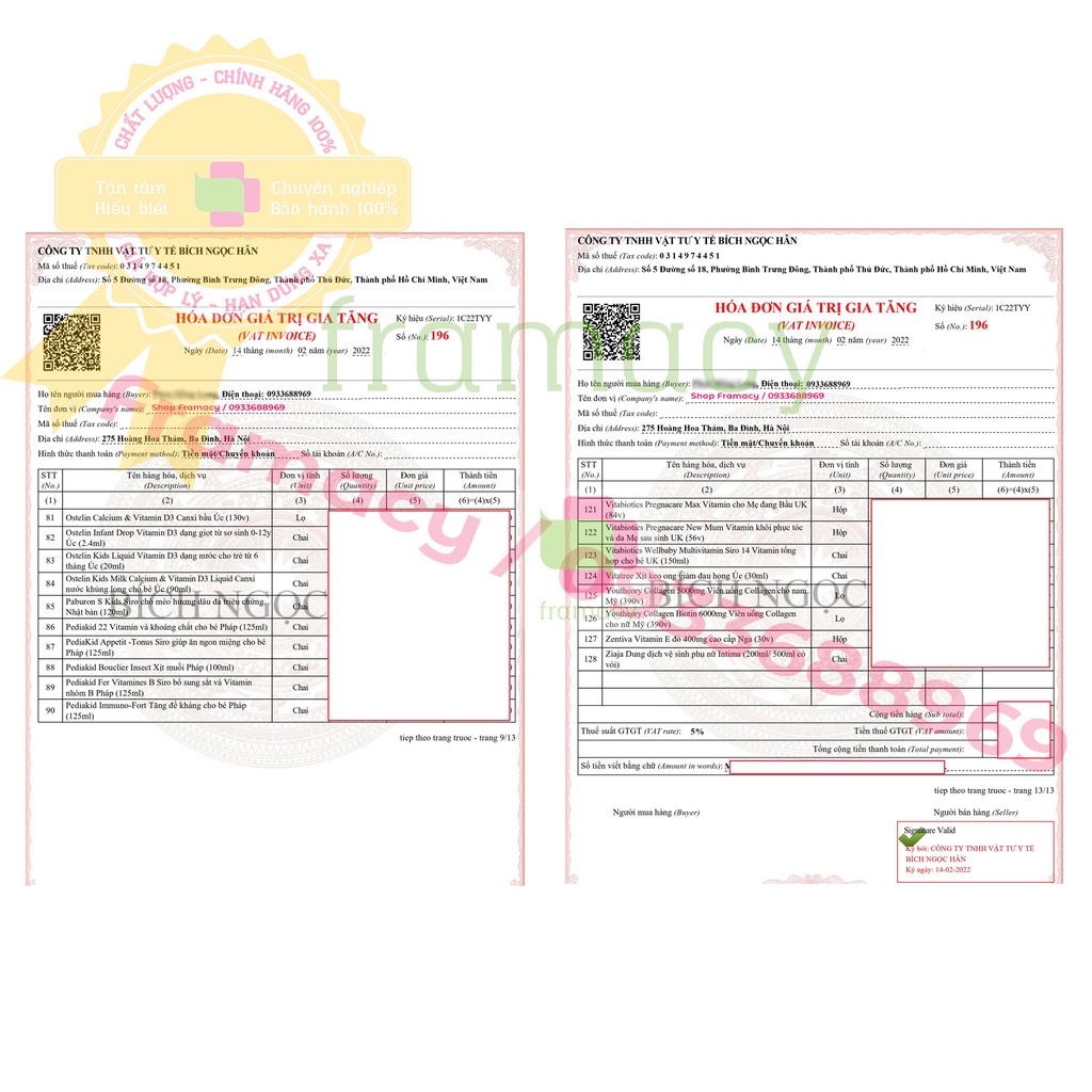 • Framacy chuyên bán sỉ và lẻ các sản phẩm chăm sóc sức khỏe 100% chính hãng với đủ hóa đơn, giấy tờ, nếu không đúng cam kết đền 100% đơn hàng. Hàng chúng tôi có hạn sử dụng xa, chất lượng, giá hợp lý. Đội ngũ tư vấn và phục vụ tận tâm, hiểu biết, chuyên nghiệp