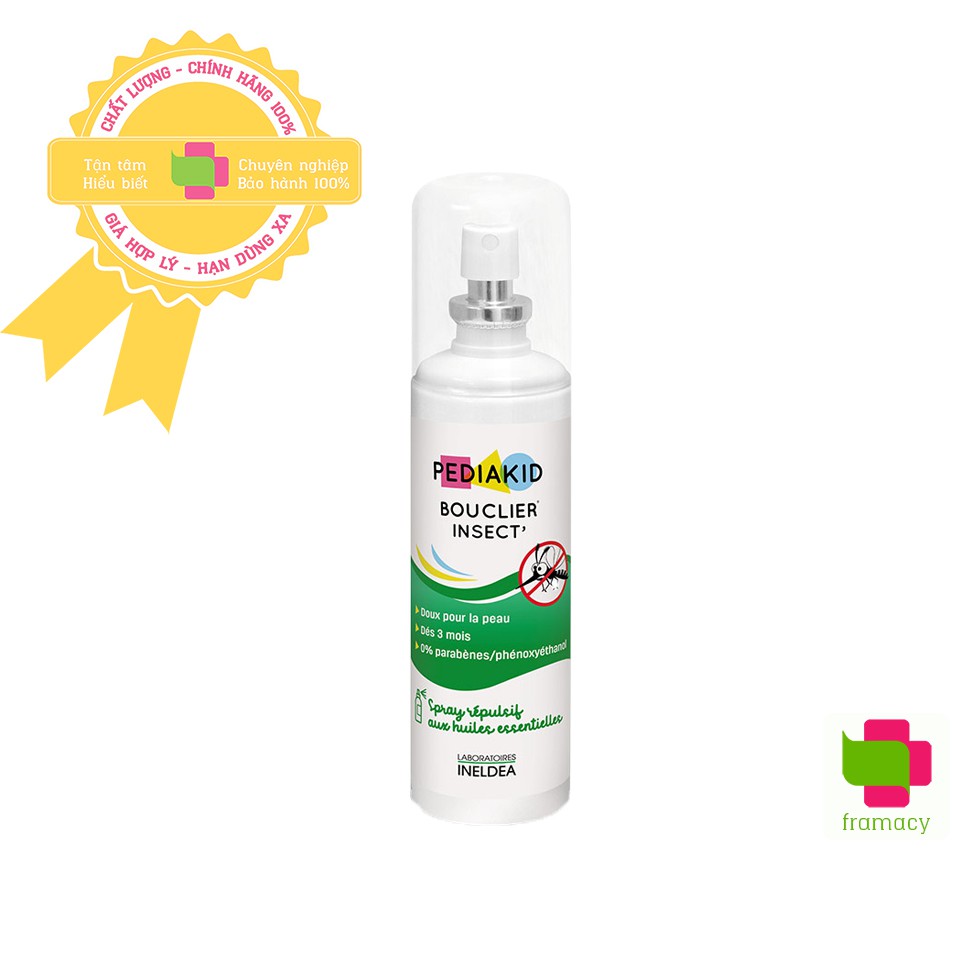 Bình xịt chống muỗi côn trùng Pediakid Bouclier Insect Spray, Pháp (100ml) bảo vệ là da bé trên 3 tháng tuổi