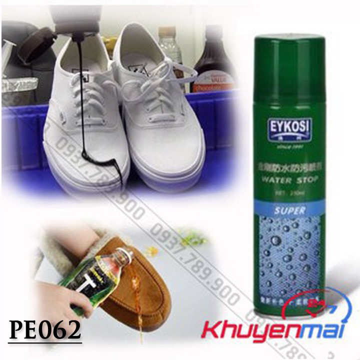 Tác dụng của Bình xịt chống nước Eykosi:- Chống thấm hoàn hảo. Đi xe máy trời mưa, bạn sẽ bớt dc nỗi lo phải co chân lên khi có xe chạy vắt nước lên, hoặc bùn đất bắn lên giày của bạn.