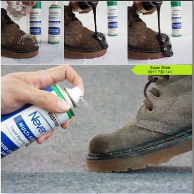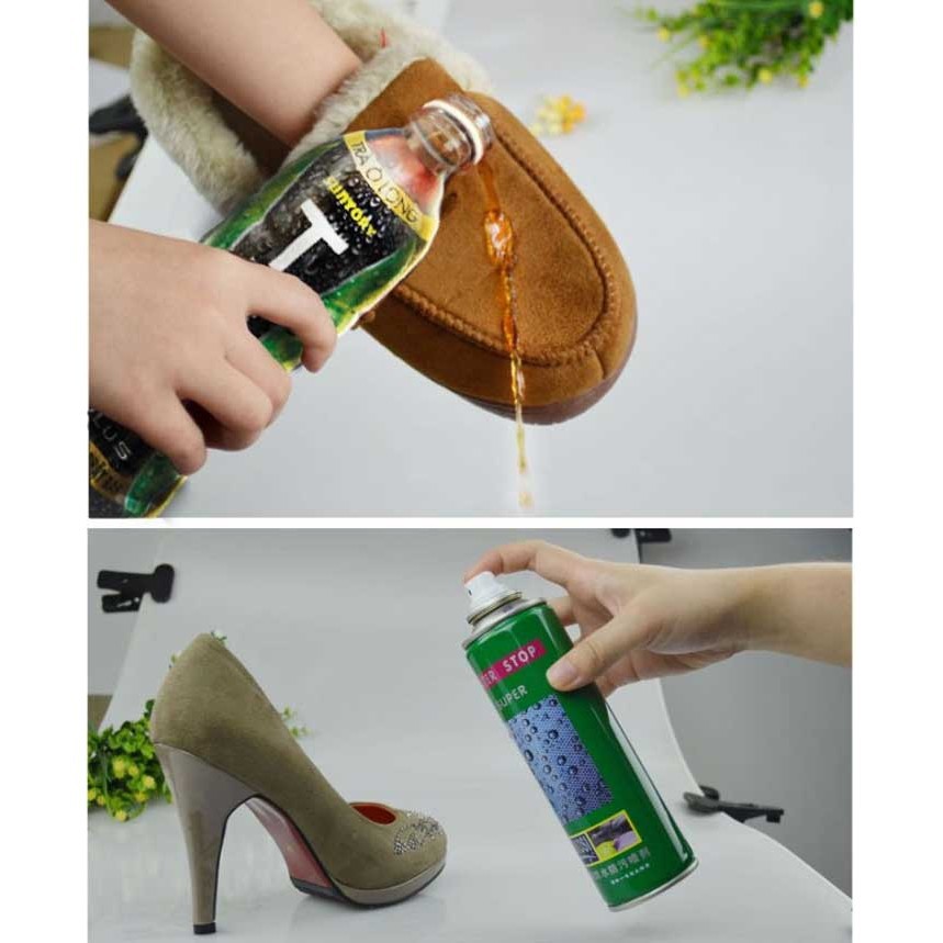 Lưu ý: Để an toàn hơn bạn nên xịt trước một chỗ nhỏ ví dụ như gót giày, đáy túi xách để xem có bị phản ứng gây đổi màu trước khi phủ diện rộng.
