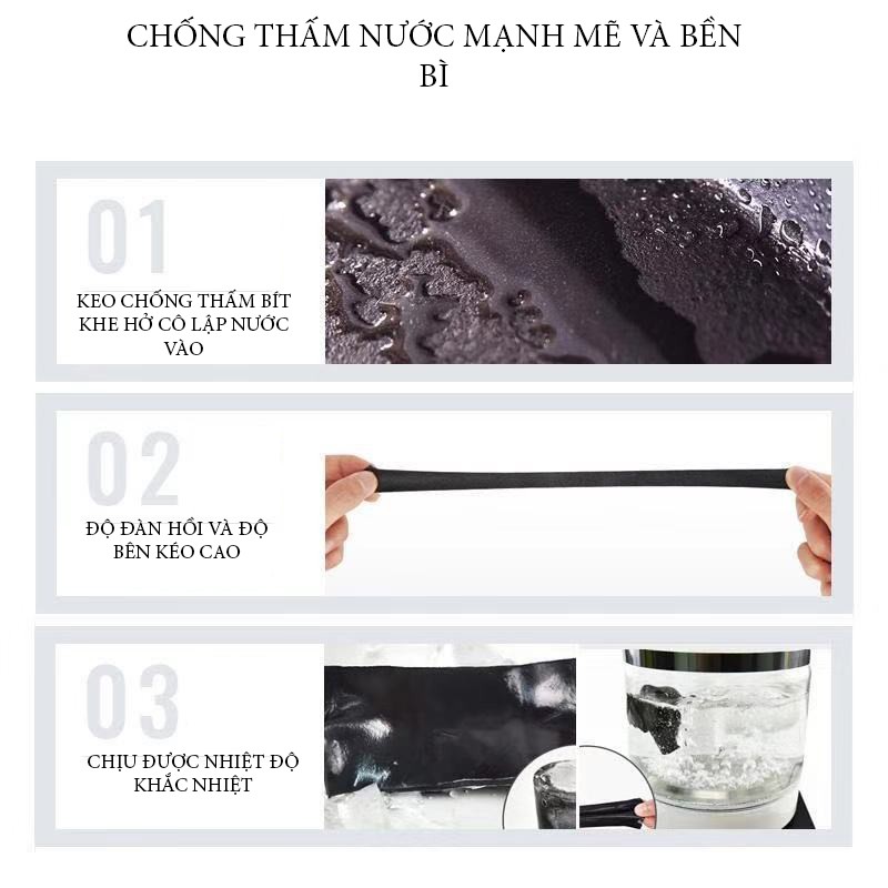 Giãn nở theo tất cả các vật liệu bám vào vá được trong tất cả các môi trường ẩm ướt, khô, nóng , lạnh, nước, dầu mỡ....