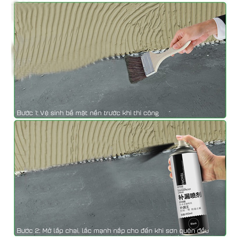 Bước 2. Lắc bình xịt trước khi xịt. Xịt vào chỗ cần xử lý chống thấm. Xịt giãn cách để tạo 2-3 lớp, mỗi lần khoảng 5 phút.