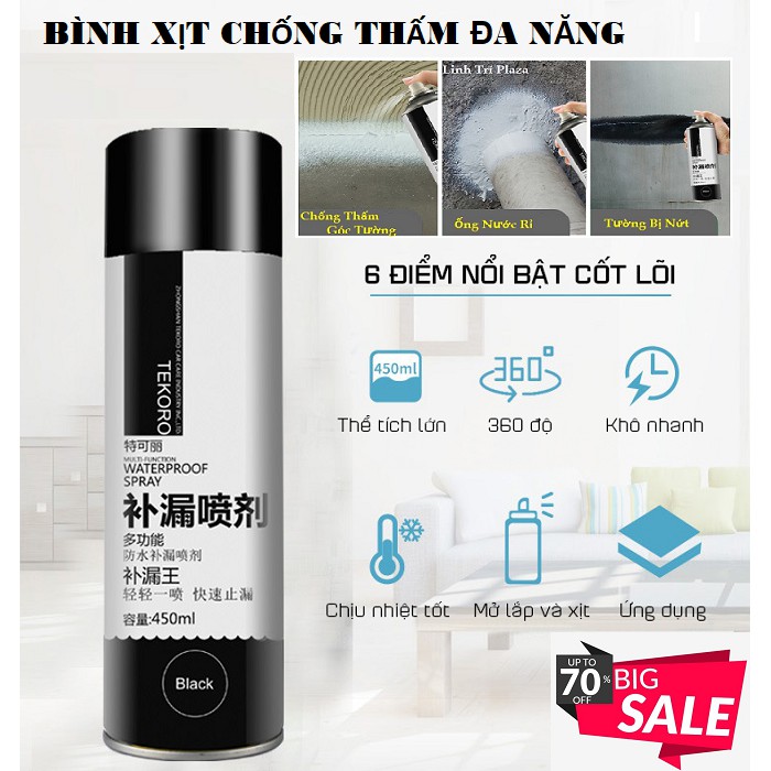 Giới thiệu BÌNH XỊT CHỐNG THẤM TEKORO NHẬT BẢN 450ML - SƠN XỊT CHỐNG THẤM CHỐNG DỘT TƯỜNG, TRẦN, MÁI NHÀ, SÂN THƯỢNG