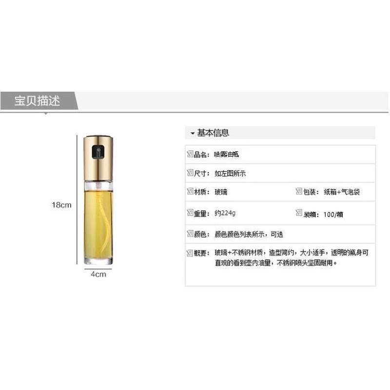 Giới thiệu Bình xịt dầu ăn bằng thuỷ tinh 100ml, bình xịt nước, gia vị